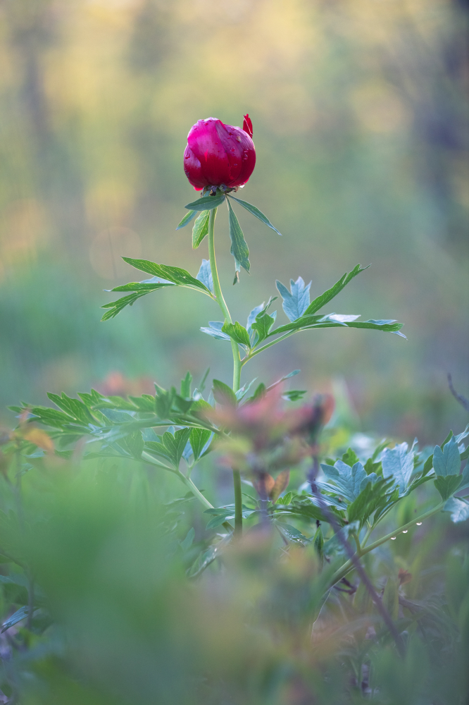 Imaginea realizata de fotograf reprezinta bujorul romanesc, Paeonia romanica fiind denumirea sa stiintifica, inflorit, primavara.
