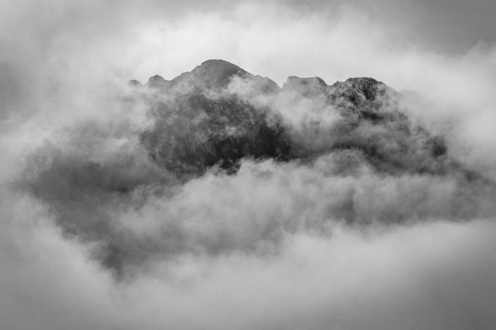 Imaginea realizata de fotograf surprinde Muntii Fagaras in ceata.