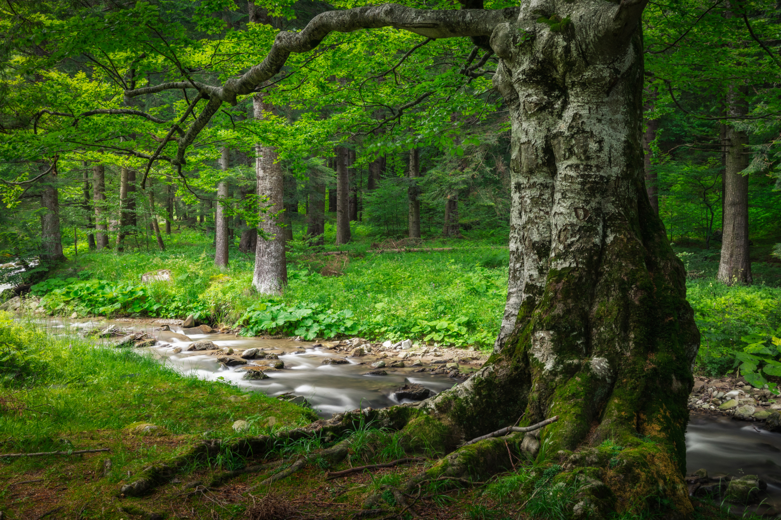 Fotograful surprinde in aceasta imagine un parau de munte din zona Cheia, Muntii Ciucas, intr-o zi superba de vara.