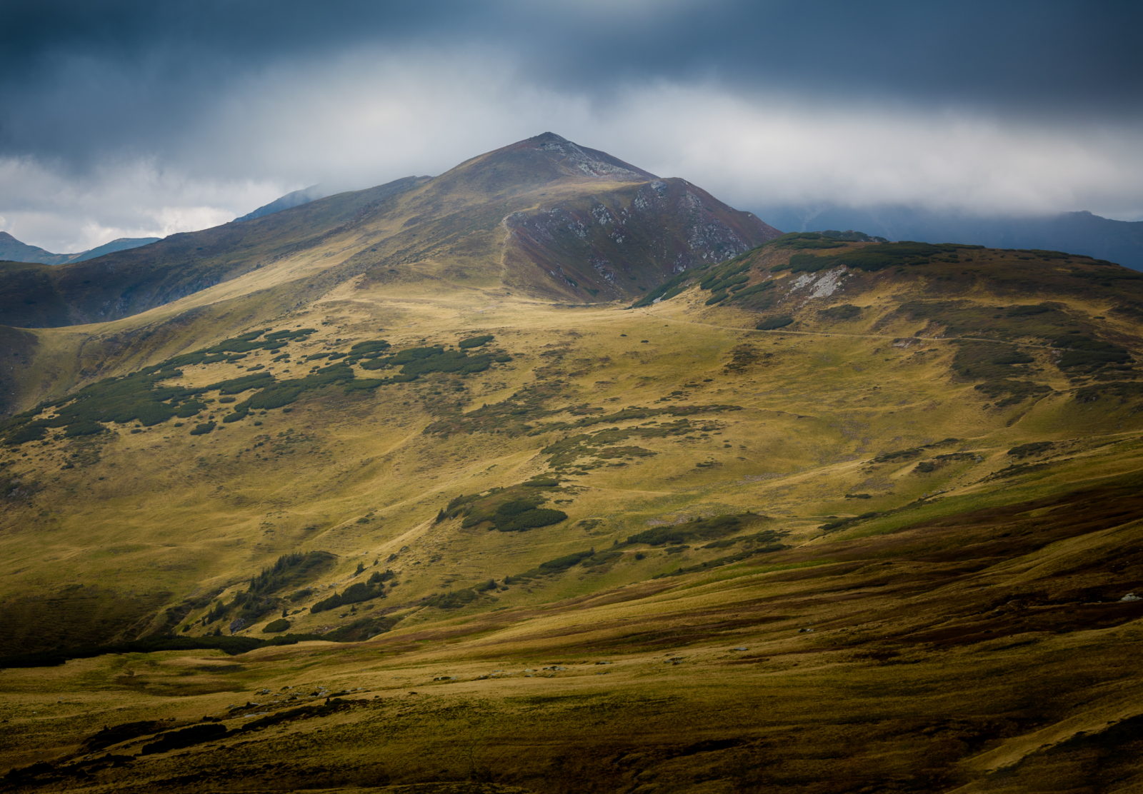 Imaginea realizata de fotograf surprinde peisajul din Muntii Rodnei spre sfarsit de toamna.