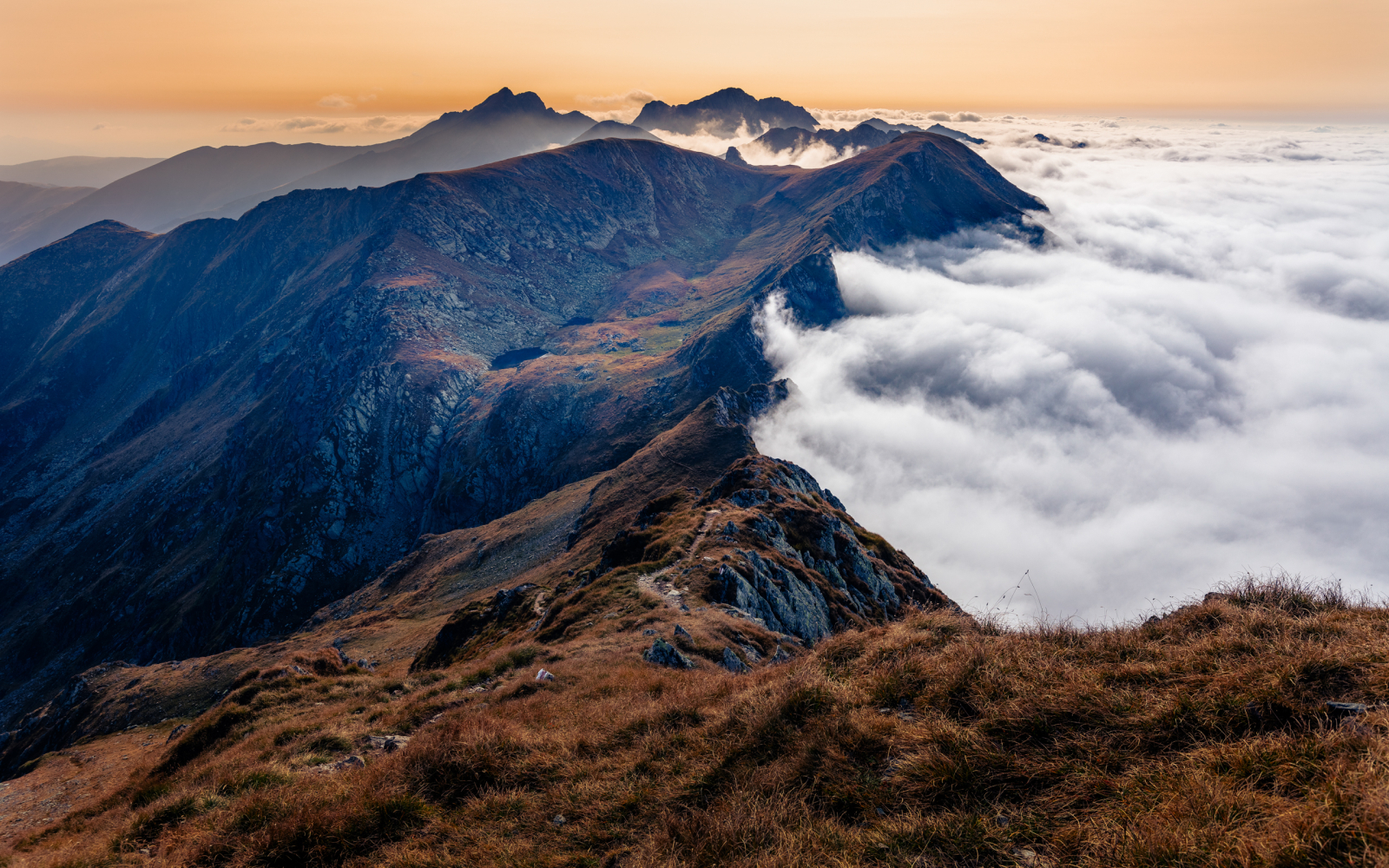 Imaginea realizata de fotograf reprezinta o vedere de pe Varful Iezerul Caprei spre Creasta Fagarasului, cu varfurile Lespezi, Cornul Caltunului si Negoie in fundal.