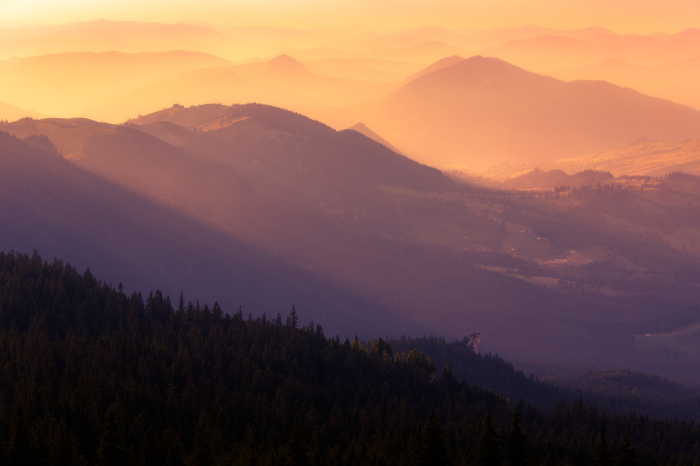 Imaginea realizata de fotograf surprinde apusul peste Carpatii Orientali, vazut din Muntii Rarau.